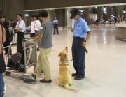 麻薬探知犬は、麻薬を見つけるとその場に座って知らせてくれます。