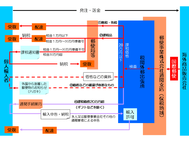 (注1)課税品の場合は、受け取る際に通関料(日本郵便株式会社の取扱手数料)が別途必要です。