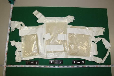 札幌税関支署千歳出張所は、平成22年3月、台湾から新千歳空港に入国した台湾人男性の携帯品検査において、粘着テープで体に巻きつけて隠匿していた覚せい剤約1kgを摘発し、平成22年3月24日、関税法違反で札幌地方検察庁あて告発しました。