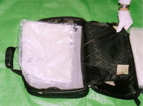 札幌税関支署千歳出張所は、平成21年1月、香港から新千歳空港に入国した台湾人男女2名の携帯品検査において、スーツケースを二重工作して隠匿していた覚せい剤約1kgをそれぞれ摘発し、平成21年2月6日、関税法違反で札幌地方検察庁あて告発しました。