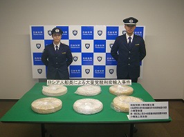 小樽税関支署は、平成26年12月、関係機関と連携の下、ロシアから小樽港に入港したカンボジア王国籍貨物船のロシア人乗組員等2名と日本人1名が、共謀して密輸入した覚醒剤約27kgを摘発し、平成27年2月16日までに、関税法違反で札幌地方検察庁あて告発しました。