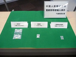 函館税関千歳税関支署は、平成26年12月25日、中華人民共和国から入国した中国人旅客が覚醒剤等の不正薬物を密輸入しようとしたところを発見・摘発した。