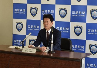 令和5年7月1日付で第82代函館税関長に発令された笠川隆博新税関長は、7月18日(火)函館港湾合同庁舎5階会議室において着任記者会見を行った。