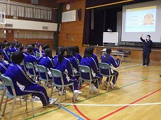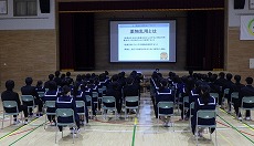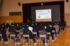 日(月)、八戸市立北稜中学校において税関教室を実施した。全校生徒