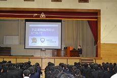 函館税関大船渡支署は、12月15日(金)、大船渡東高等学校において3年生65名に対して、税関が摘発した規制薬物の種類やその危険性並びに市販薬物も含めた乱用状況とその対処方法について講話を実施した。