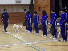 函館税関千歳税関支署は、11月20日(月)、千歳市立北斗中学校において、税関教室を実施した。3年生93名に対して、税関の仕事とその役割、不正薬物の種類や心身への影響、薬物乱用の代償等について講話を実施したほか、麻薬探知犬によるデモンストレーションを行った。
