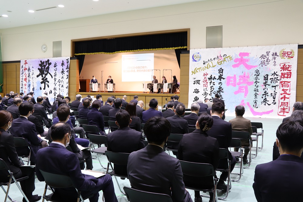 神戸税関は、税関行政に対する理解促進と地域経済への貢献を目的とする「神戸税関時計塔ネットワーク」を開催しました。今回は、税関150周年事業として久元神戸市長にご臨席いただくとともに、神戸を代表する企業・団体の代表者等約80名を本関にお招きし、神戸税関長をモデレーターとして、大学教授等の有識者4名をパネリストに迎え、これからの神戸港と神戸空港の発展と税関の役割についてディスカッションを行いました。地域の方々に税関の存在を身近に感じていただくとともに、地域の情報や行政ニーズを傾聴できる貴重な機会となりました。