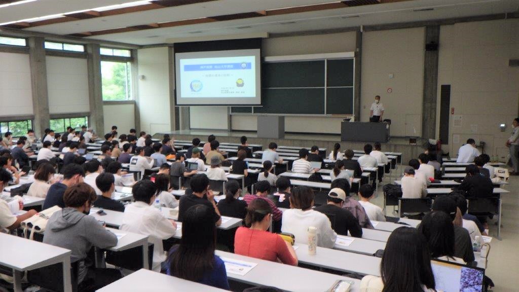 神戸税関は、関税行政・税関業務への理解を深めてもらうことを目的とし、岡山大学農学部の3年生以上を対象とした「日本農業論2」のカリキュラムにおいて、学生約70名 に対し「税関の使命と役割」と題した講義を行いました。