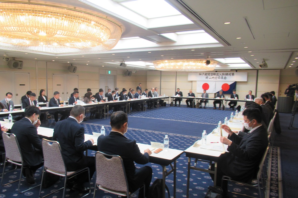 神戸税関水島税関支署と岡山空港税関支署は、昭和31年に発足以来、今回で40回目となる「神戸税関密輸出入取締対策岡山地区協議会」を岡山市内において開催しました。同協議会には、関係機関8機関から46名が出席し、各機関における水際取締、薬物・銃器等の情勢について意見交換を行いました。