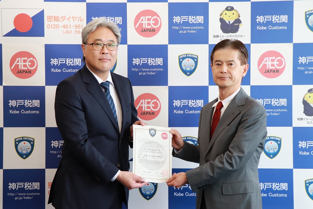 - 12月15日(金) 神戸税関は新規AEO事業者に対して認定書を交付しました