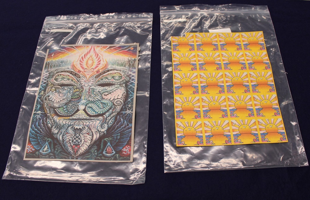 リゼルギン酸ジエチルアミド(別名リゼルギド)及びその塩類(通称LSD)を含有する紙片 約9.23グラム(1,000片)