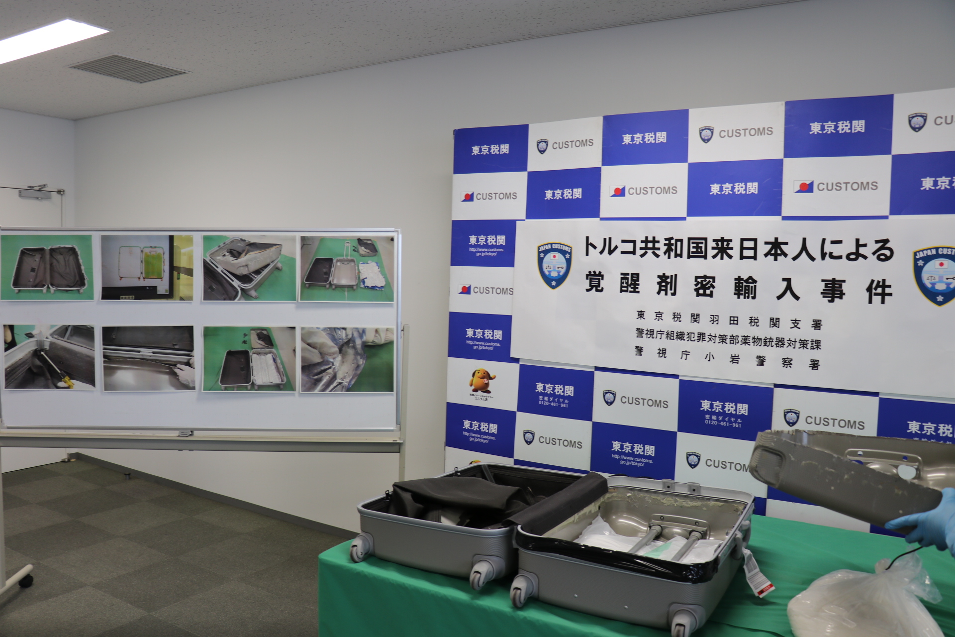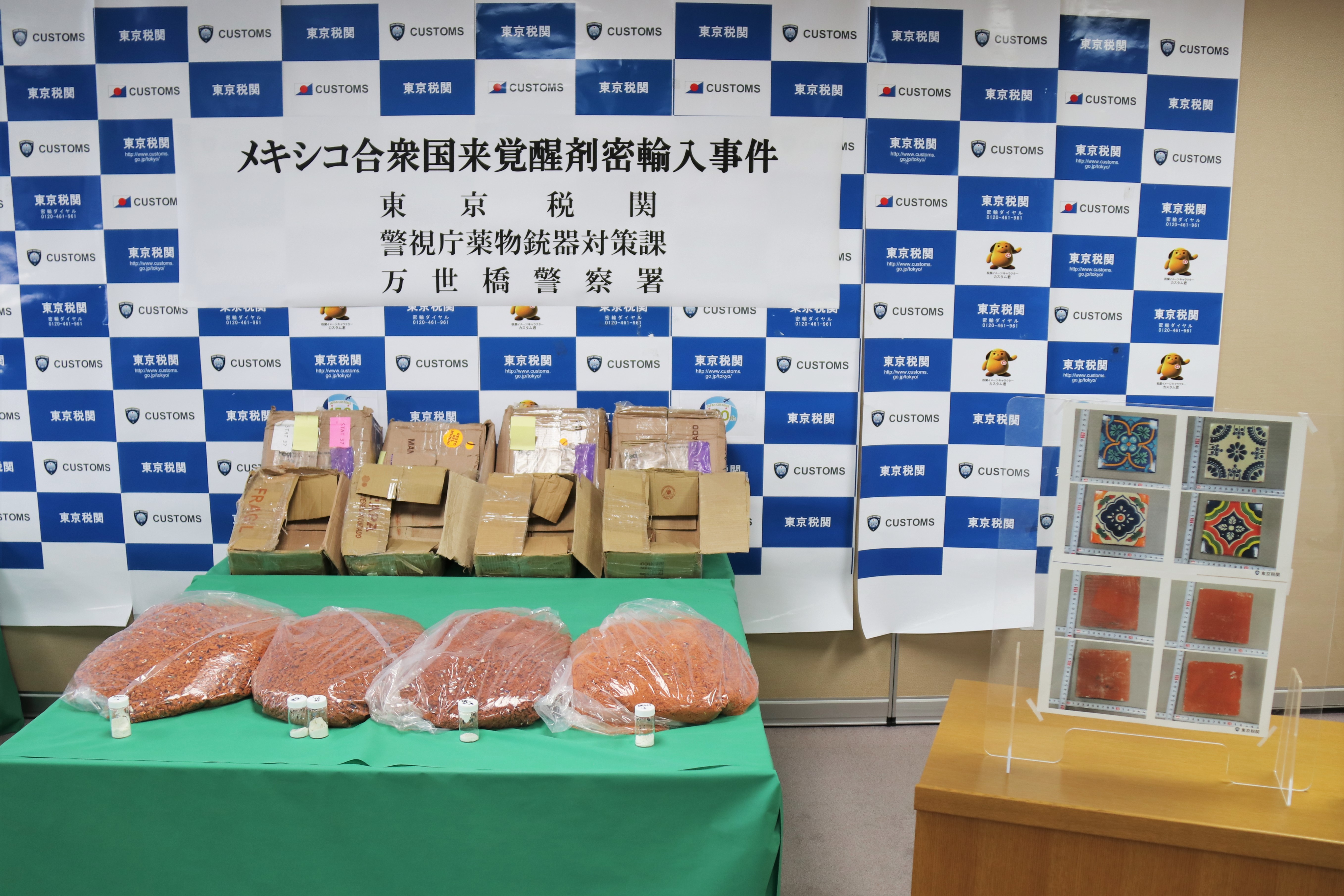 東京税関は、令和4年11月7日、メキシコ合衆国からの航空小口急送貨物に収納された装飾タイルに隠匿された覚醒剤を摘発し、警視庁組織犯罪対策部薬物銃器対策課と共同調査のうえ、本年1月26日に関税法違反で東京地方検察庁に告発しました。