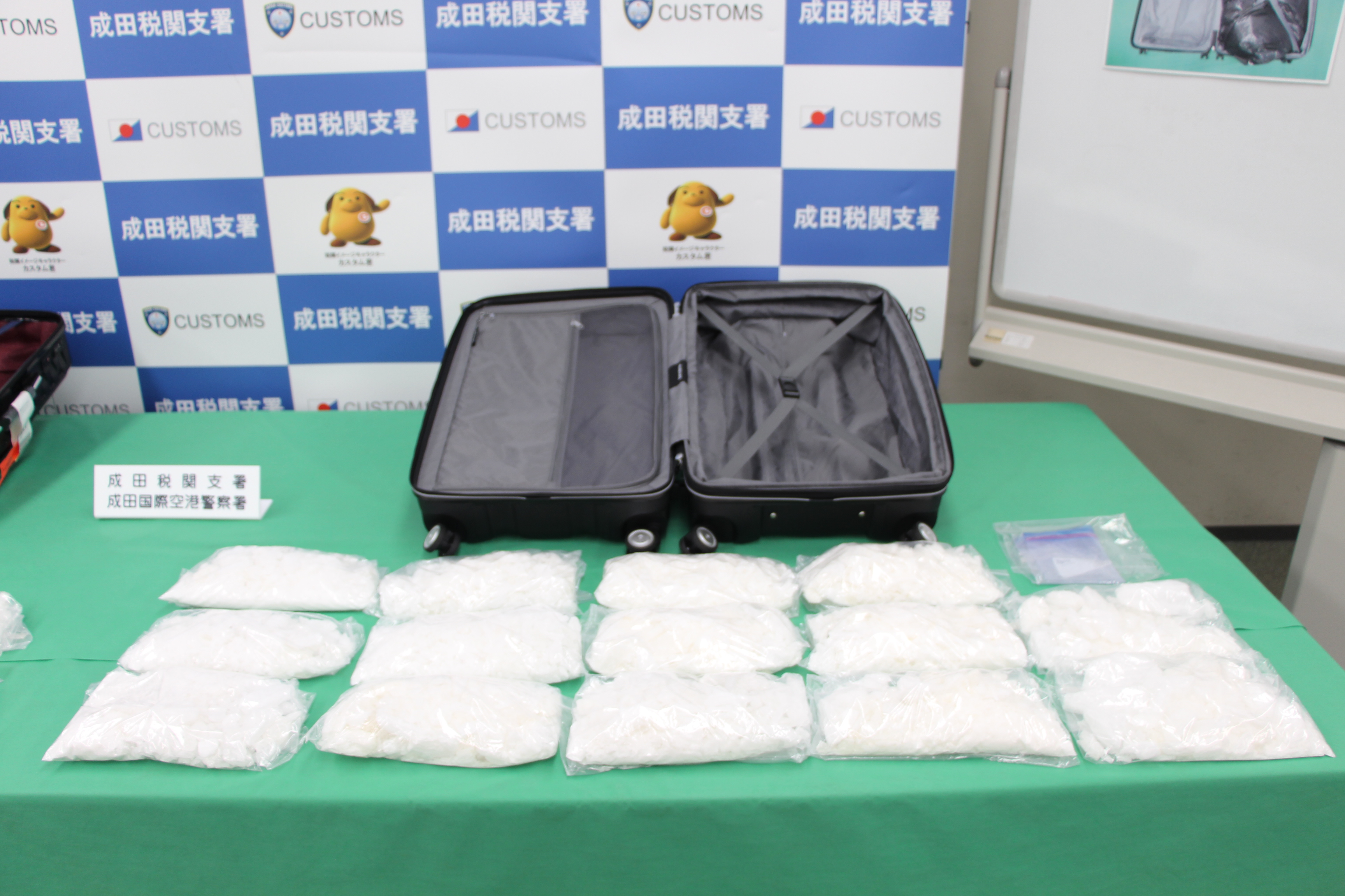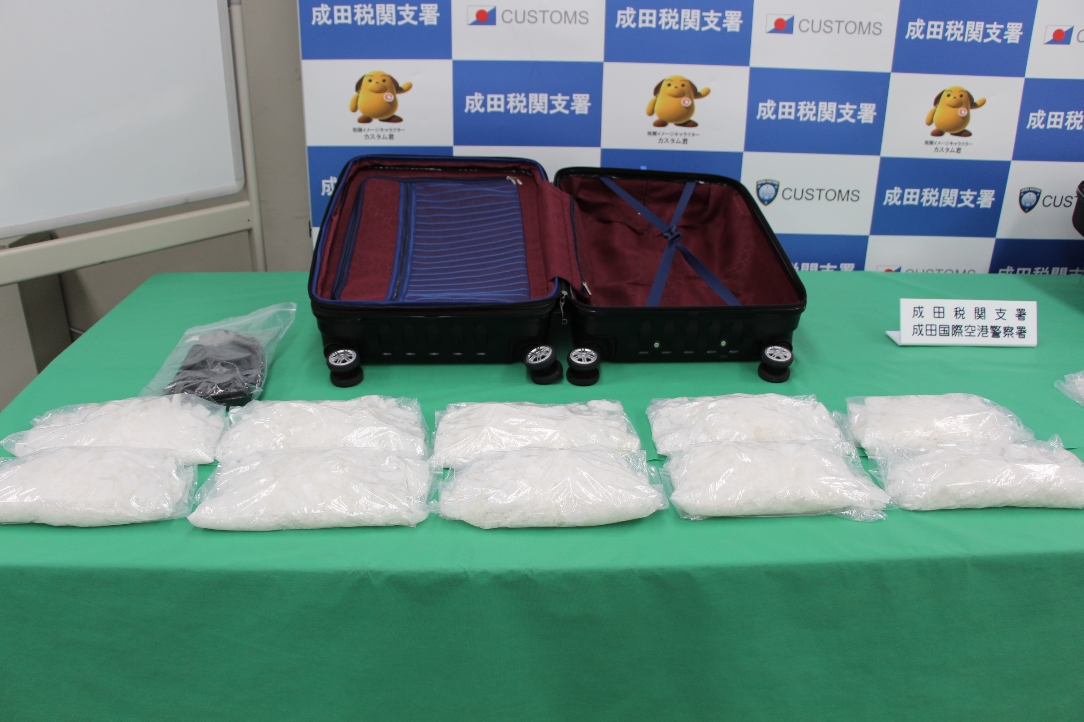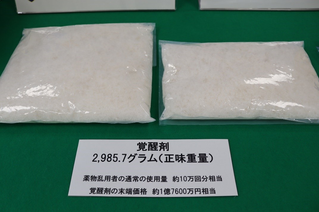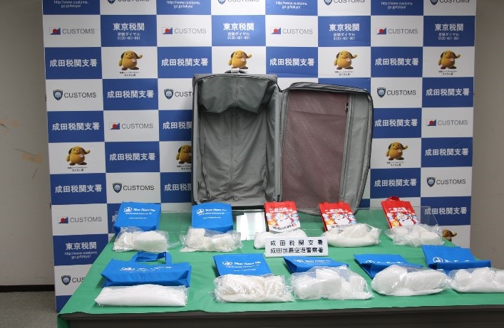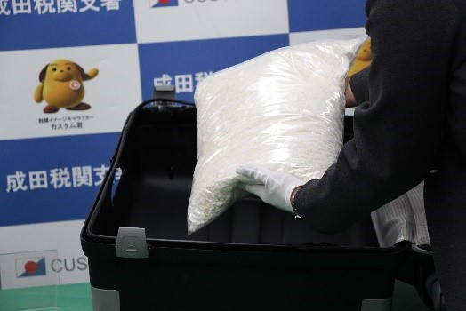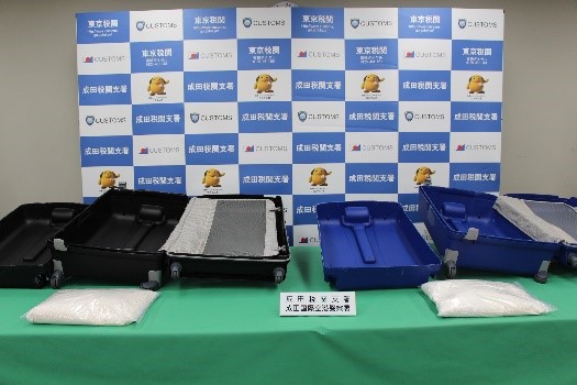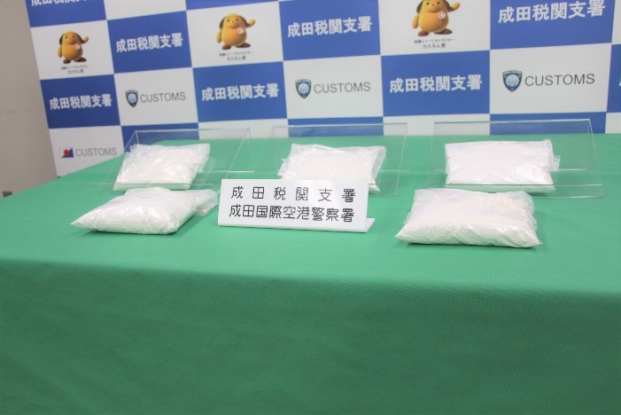 東京税関成田税関支署は、令和5年11月25日、アメリカ合衆国から成田国際空港に入国したアメリカ人男性2名が、大量の覚醒剤を密輸入しようとしたところを発見・摘発して、関税法違反、覚醒剤取締法違反で現行犯逮捕し、同月27日、千葉県成田国際空港警察署が身柄を千葉地方検察庁に送致しました。