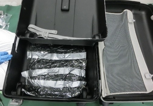 東京税関成田税関支署は、令和5年10月3日、メキシコ合衆国から成田国際空港に入国したメキシコ人女性が、大量のコカインを密輸入しようとしたところを発見・摘発して、関税法違反、麻薬及び向精神薬取締法違反で現行犯逮捕し、同月4日、千葉県成田国際空港警察署が身柄を千葉地方検察庁に送致しました。