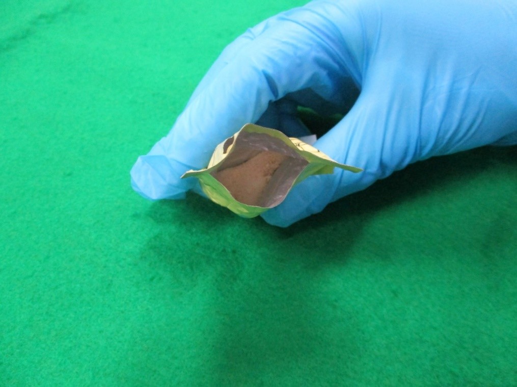 5−メトキシ−N,N−ジメチルトリプタミン(通称等5−MeO−DMT)を含有する茶色固形状物 1袋(1.03グラム)