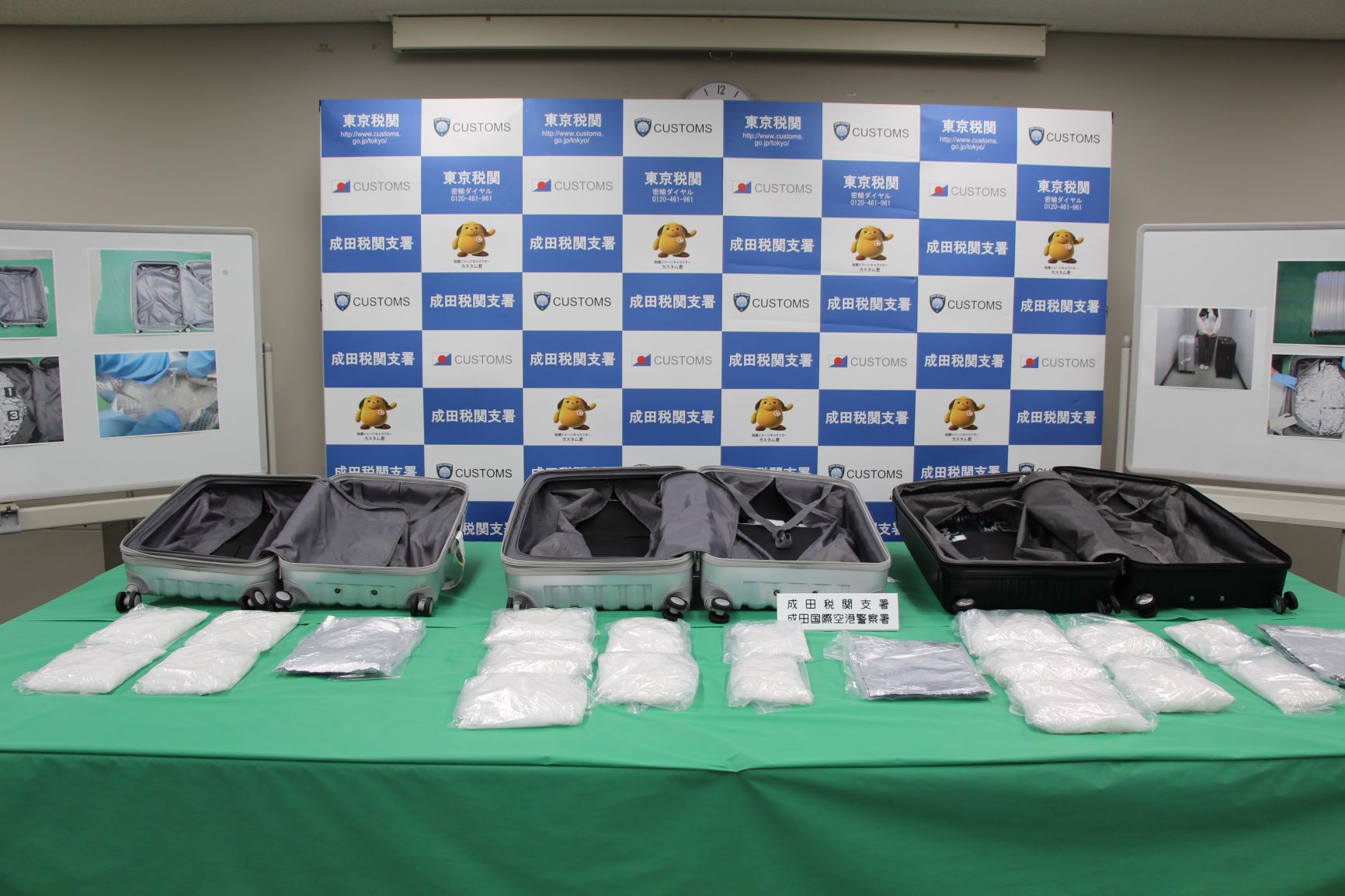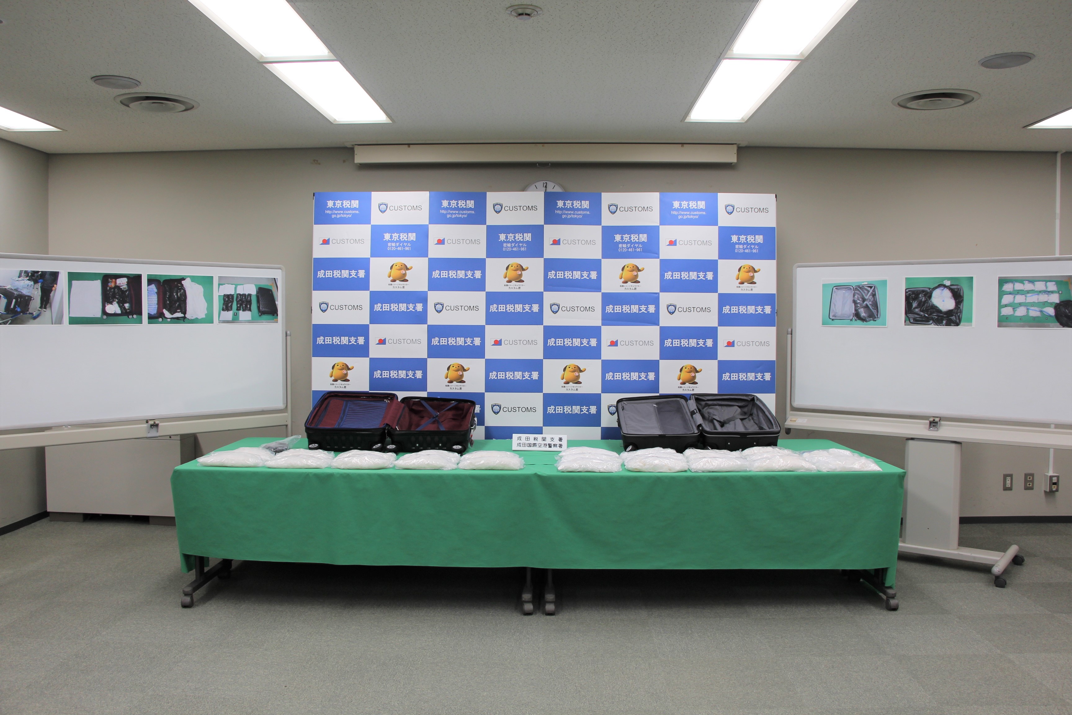 東京税関成田税関支署と千葉県成田国際空港警察署は、令和5年1月8日、スリナム共和国から入国したスリナム人女性2名が大量のコカインを密輸入しようとしたところを発見・摘発して、関税法違反、麻薬及び向精神薬取締法違反で現行犯逮捕し、同月10日、身柄を千葉地方検察庁に送致しました。