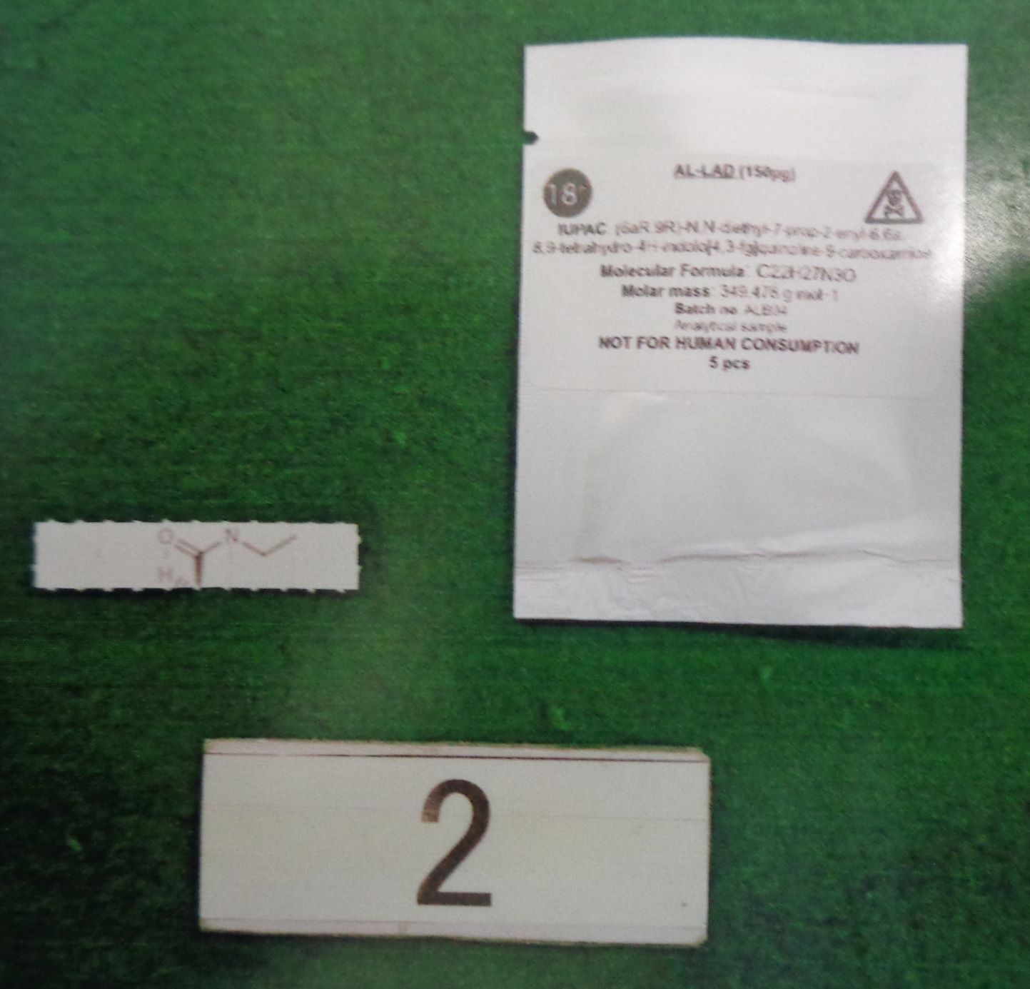 麻薬であるリゼルギン酸ジエチルアミド(別名リゼルギド)(通称LSD) を含有する粉状物