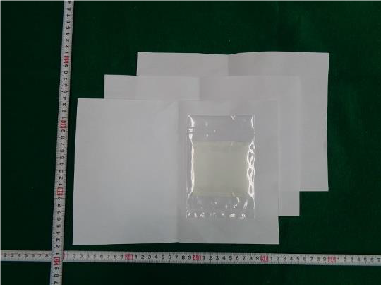 犯則嫌疑者は、共謀の上、フランス共和国から国際スピード郵便を利用し、麻薬であるN・α-ジメチル-3・4-(メチレンジオキン)フェネチルアミン(別名MDMA)を密輸入しようとしたが、令和4年12月13日、当関中部外郵出張所職員による検査で発見されたものである。
