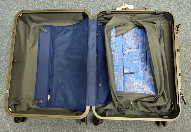 被疑者は、令和元年12月14日、ドイツ連邦共和国からスイス連邦を経由して成田国際空港に入国した際、スーツケース側面に隠匿した覚醒剤約1.8キログラムを密輸入しようとしたが、税関検査において、発見・摘発されたものである。
