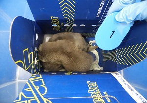 大阪税関関西空港税関支署は、令和元年9月28日、タイ王国から関西空港に帰国した邦人旅客が「絶滅のおそれのある野生動植物の種の国際取引に関する条約」(通称ワシントン条約)で取引が規制されているコツメカワウソ2匹を携行スーツケースに収納した紙箱内に隠匿のうえ、密輸入しようとしたところを摘発した。