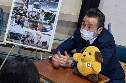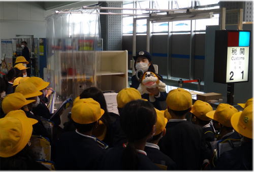 - 門司税関戸畑税関支署は、北九州キャリア教育研究会主催の「夢授業」において、北九州市立修多羅小学校4〜6年生約70名に対し、税関業務全般について説明した。