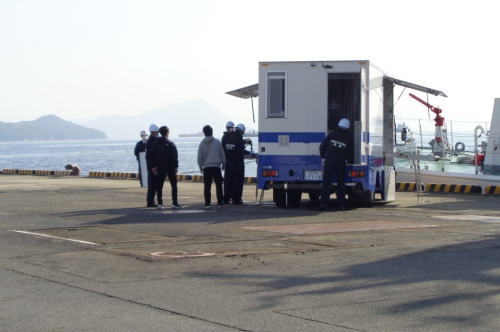 - 門司税関徳山税関支署平生出張所は、平生港田名埠頭において実施された「平生港水際テロ対策合同訓練」に参加した。当訓練は、水際テロ対策の一環として、税関のほか警察や海上保安部等、同港の危機管理を担当する関係機関相互が連携して対応し危機管理体制の維持向上を図ることを目的として実施された。