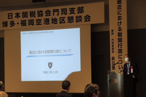 - 前川税関長は、福岡市内で開催された公益財団法人日本関税協会門司支部主催の博多・福岡空港地区懇談会において、「最近における税関行政について」と題して、参加者約70名に対して講演を行った。