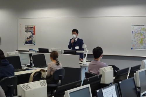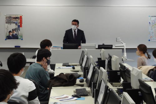 - 門司税関戸畑税関支署は、九州国際大学において、「キャリア・チュートリアル2」の1コマとして、法学部の学生約20名に対する税関講座を実施し、葭原支署長が税関の業務や役割について説明を行った。