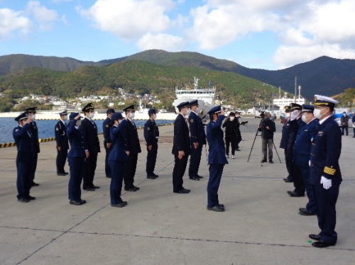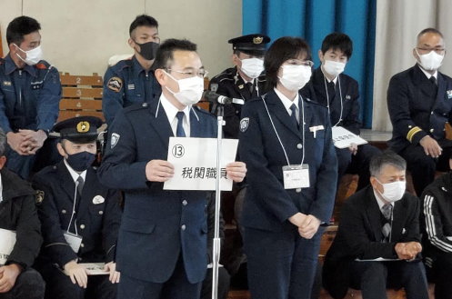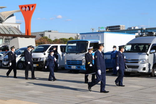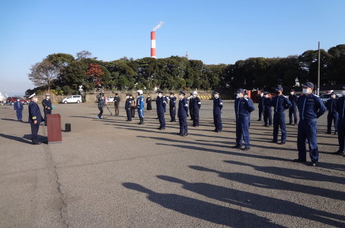 - 門司税関徳山税関支署は、「年末特別警戒期間」(12月6日(月)〜同月15日(水)の実施に伴い、徳山海上保安部庁舎前駐車場等において、令和3年四機関合同年末年始特別警戒出陣式(参加機関:徳山税関支署、徳山海上保安部、周南警察署、広島出入国在留管理局周南出張所)を実施し、その模様を報道機関に公開した。