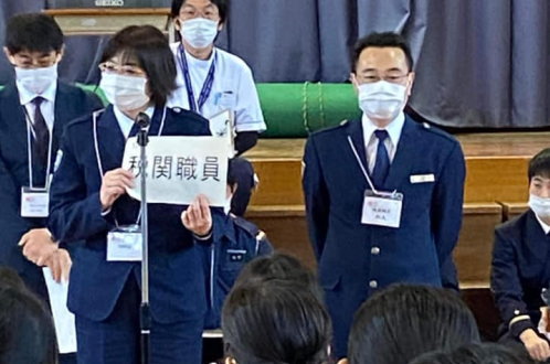 - 門司税関博多税関支署は、福岡キャリア教育研究会主催の「夢授業」において、福岡市立城西中学校1年生約200名に対し、税関業務全般について説明した。