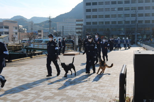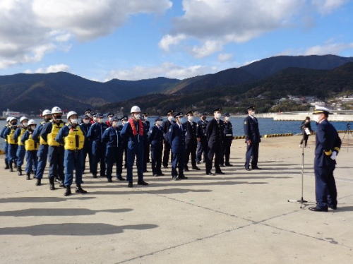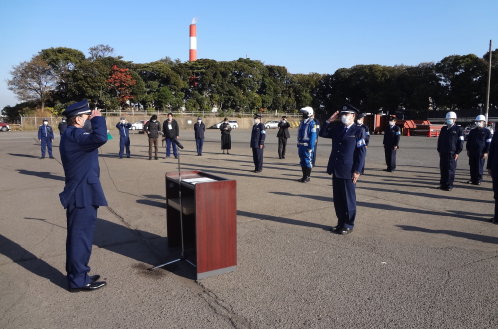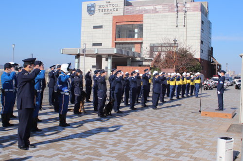 - 門司税関博多税関支署は、博多港中央ふ頭において開催された博多臨港警察署主催の「年末特別警戒出陣式」に参加した。