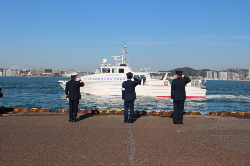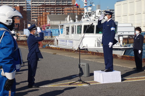 - 門司税関は、「年末特別警戒期間」(本年12月6日(月)〜同月15日(水))の実施に伴い、門司1号岸壁において、令和3年三機関合同年末特別警戒出陣式(参加機関:門司税関、門司海上保安部、福岡県警察(北九州市警察部・門司警察署))を実施し、その模様を報道機関に公開した。