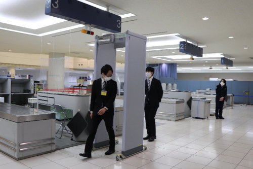 - 門司税関は、東洋信号通信社の職員4名の見学を受け入れ、税関業務について説明するとともに、不正薬物の隠匿事例やコピー商品の紹介、取締機器として税関で実際に使用している門型金属探知機や手持ち金属探知機の使用体験を行った。