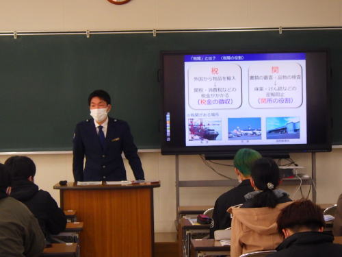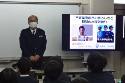 - 門司税関は、福岡県立小倉工業高等学校において、全学年約660名に対し校内オンライン環境を活用した税関教室を実施した。