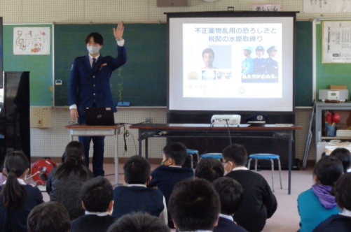 - 門司税関徳山税関支署防府出張所は、山口県防府市立玉祖小学校で開催された薬物乱用防止教室において、防府警察署と合同で、6年生54名を対象に講話を行った。