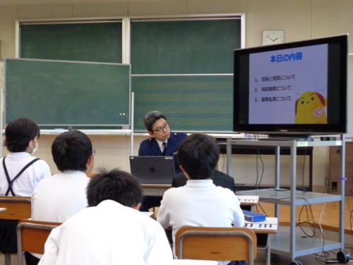 - 門司税関は、福岡県立小倉商業高等学校で開催された、北九州キャリア教育研究会主催の「夢授業」において、学生約30名に対し、税関の業務や役割及び税関の仕事のやりがいや重要性について説明した。