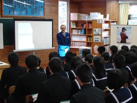 - 門司税関厳原税関支署は、対馬市立佐須中学校において、生徒45名及び教諭13名に対して、大浦支署長が「税関の役割り・その仕事」と題して講演を行い、税関業務の紹介並びに薬物乱用防止を呼び掛けた。