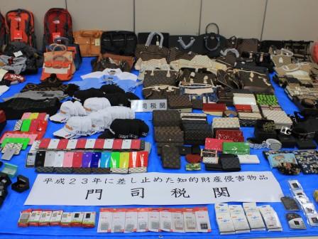- 門司税関は、平成23年の門司税関における知的財産侵害物品の差止状況を発表、その一部約1,500点を報道機関に公開し、国民に向けてコピー商品を買わないよう・持ち込まないよう注意を呼び掛けた。