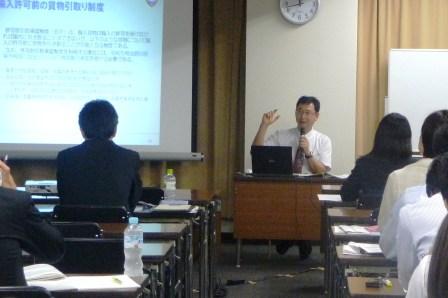 - 門司税関大分税関支署は、大分市で開催された(社)大分県貿易協会主催の「平成23年度春季貿易講座」において、輸出者、輸入者及び通関業者等32社54名に対して「輸出入通関講座:輸出入通関の基礎知識と手続きのポイント」と題して約3時間にわたり講演を行うとともに、情報提供の依頼を行った。