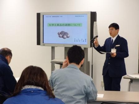 門司税関田野浦出張所では、北九州地区国際貨物検査センターにおいて、通関業者を対象とした業務説明会(出席者数:20者22名)を開催した。説明会では、「化学品の通関について」と題して、品目分類や資料収集の方法などについて説明するとともに、密輸情報の提供を呼びかけた。