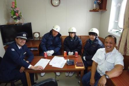 門司税関宇部税関支署は、2月12日(水)から14日(金)までの間、山口県立宇部商業高等学校2年生3名の職場見学を受け入れた。今回の職場見学は、同校が生徒たちに将来の社会人として必要な基礎能力を身につけさせることを目的に実施しているものであり、初めに税関の仕事内容等について説明した後、保税工場や外国貿易船等での業務を間近で見学してもらった。生徒たちは、特に、職員と外国貿易船船員との英語でのやり取りを興味深そうに見学していた。