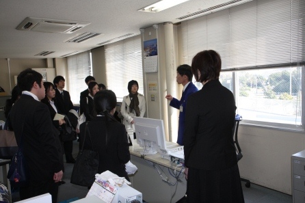 門司税関は、北九州地区国際貨物検査センターにおいて、西南女学院大学学生等8名の見学を受け入れた。初めに、税関の仕事内容及び大型X線検査施設の概要等を説明した後、同施設の外観見学を実施した。質疑応答の時間には、医薬品の輸出入手続き及び税関職員に占める女性職員の割合等についての質問が出された。