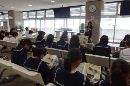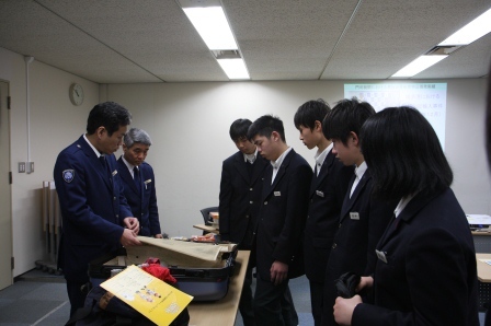 門司税関福岡空港税関支署は、長崎県立佐世保商業高等学校国際コミュニケーション科の生徒等43名の見学を受け入れ、広報ビデオで税関の業務内容を紹介するとともに、社会悪物品の摘発状況等を紹介した。生徒からは、麻薬探知犬、社会悪物品、知的財産侵害物品等についての質問が寄せられた。その後、国際線ターミナル内の税関関連施設を中心に施設紹介を行った。