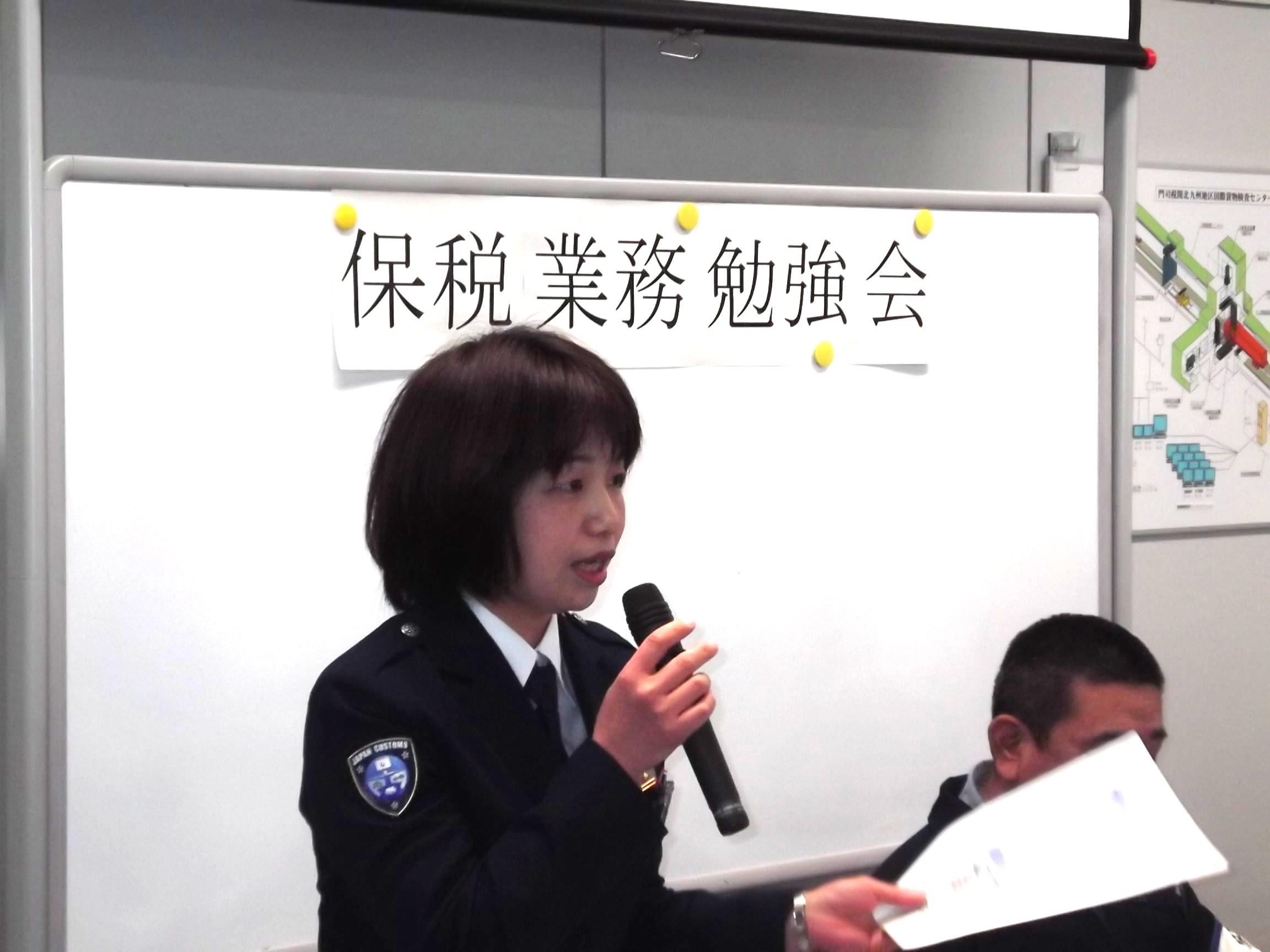 門司税関徳山税関支署防府出張所は、防府地方合同庁舎会議室において、保税業務勉強会(管内の保税関係業者11社20名が出席)を開催し、保税事務処理に係る基本事項等について説明を行った。
