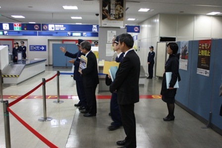 - B博多港国際ターミナル:日韓・高速船の入国旅客に対する旅具検査状況の視察