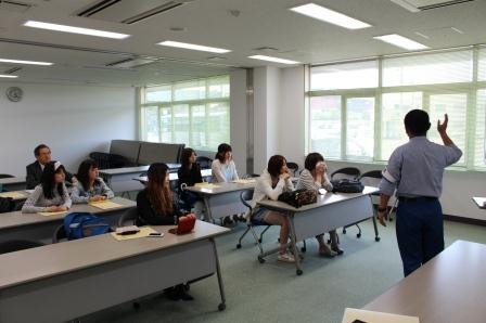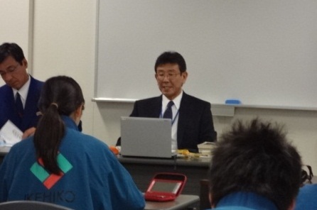 税関長と写真撮影 講義の様子(リスクマネジメント)
