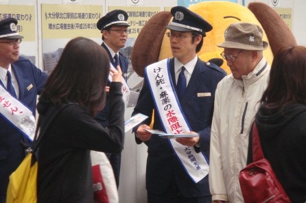 門司税関大分税関支署は、薬物及び銃器取締強化期間(5月7日〜31日)に伴い、JR大分駅において、警察、海上保安部、大分県薬務課、通関業会と合同キャンペーンを実施した。キャンペーンでは、制服職員が密輸情報提供等を呼びかけるチラシを配付するとともに、税関イメージキャラクター「カスタム君」も市民と触れ合うなど、税関PRを行った。薬物及び銃器の密輸に関する情報は、『0120-461(シロイ)-961(クロイ)』までご一報ください。
