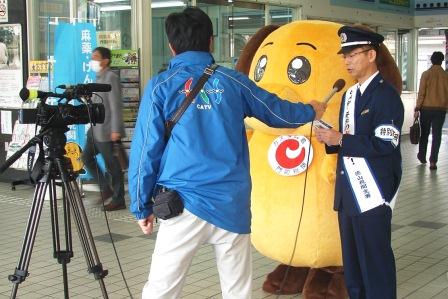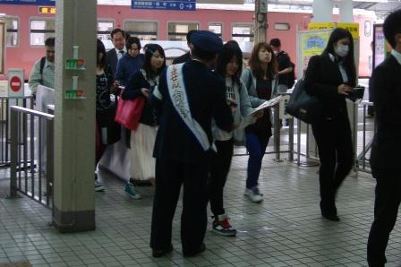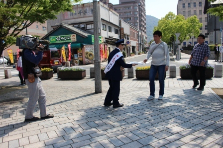 門司税関岩国税関支署は、薬物及び銃器取締強化期間(5月7日〜31日)に伴い、JR岩国駅において、関係機関(警察、海上保安部、通関業会)と合同で密輸情報提供等を呼びかけるキャンペーンを実施し、制服職員がチラシを配付した。キャンペーンの様子は、報道機関の取材を受け、後日、報道された。
