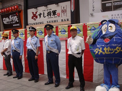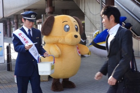 門司税関徳山税関支署は、薬物及び銃器取締強化期間(5月7日〜31日)に伴い、JR徳山駅において、密輸情報提供等を呼びかける関係機関(警察、海上保安部、入国管理局、通関業会等)との合同キャンペーンを実施した。キャンペーンでは、税関イメージキャラクター「カスタム君」も市民と触れ合い、税関PRを行った。