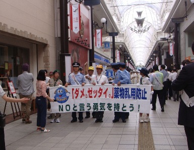 大分税関支署は、「6.26国際麻薬乱用撲滅デー」を広く県民に普及するため、官民一体となった「大分県薬物乱用6.26ヤング街頭キャンペーン」に参加し、大分市中央町商店街アーケード周辺において、パレード及び啓発チラシ等の配布を行った。